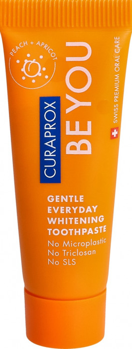 Le dentifrice orange Curaprox Be You lutte efficacement contre les dépôts et les taches sur les dents tout en soignant la muqueuse buccale grâce à des extraits de plantes sélectionnés.