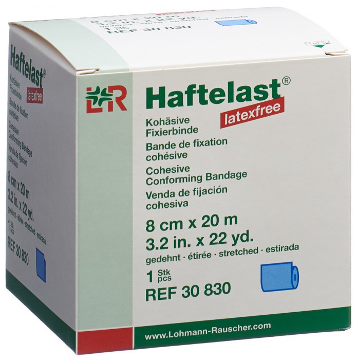 Haftelast sans latex bande de fixation cohésive 8cmx20m bleu