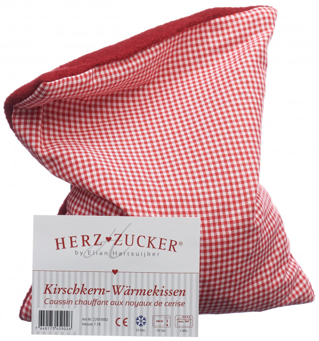 HERZZUCKER Coussin noyaux cerise 26x21cm carreaux/laine feutrée rouge