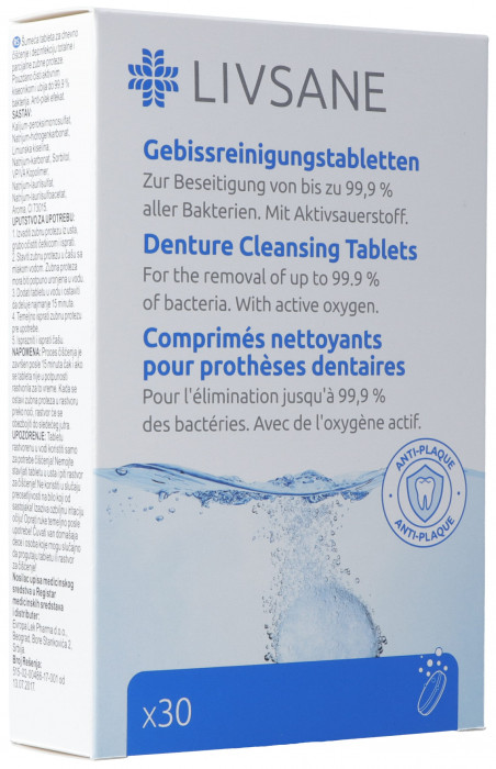 Livsane Comprimés nettoyants pour prothèses dentaires 30 pce