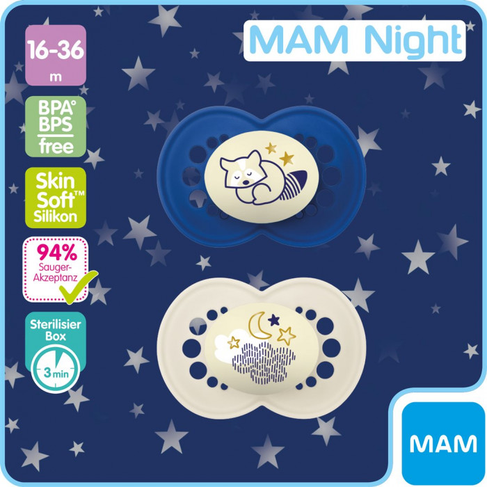 MAM Night lolette silicone 16-36 mois Boy 2 pce