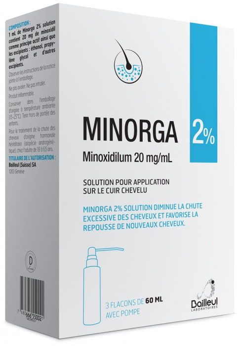 Minorga 2% Solution est un produit pour la croissance des cheveux à usage externe uniquement, qui contient le principe actif minoxidil.