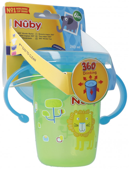 Nuby gobelet magique 360° 240ml avec anses VERT anti-goutte