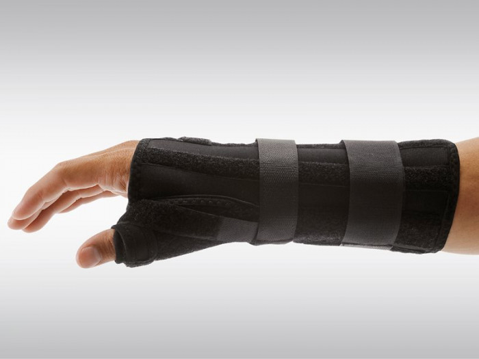 Avec une attelle en aluminium volare radiale, qui s'adapte au pouce, malléable, fermeture velcro circulaire, noir.