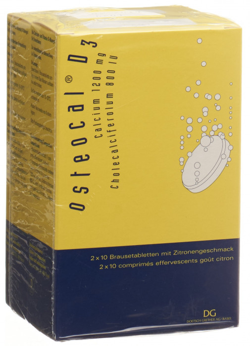 Osteocal D3 1200/800 est une combinaison de carbonate de calcium et de vitamine D3 (cholécalciférol).