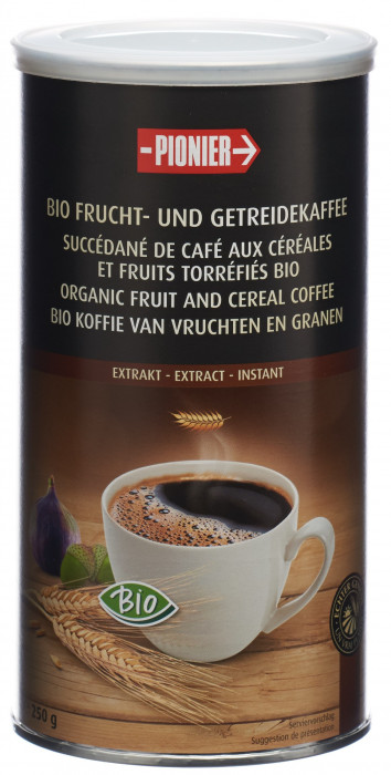 Pionier Extrakt est une boisson ressemblant à du café, à base de fruits et de céréales. Le mélange équilibré rend l'extrait de fruits et de céréales Pionier fin et digeste. Adapté aux enfants - il ne contient pas de caféine.
