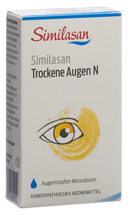 Selon la conception homéopathique du médicament, Similasan Yeux secs N peut être utilisé en cas de sécheresse oculaire avec des symptômes tels que sensation de sable dans les yeux, yeux légèrement irrités ou yeux larmoyants.
