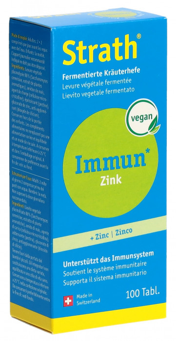 Complément alimentaire enrichi en zinc naturel. Strath Immun, qui contient plus de 60 substances vitales purement naturelles et une quantité équilibrée de zinc, soutient de manière naturelle le fonctionnement du système immunitaire. Il est donc particulièrement indiqué dans les situations présentant un risque accru de maladie, par exemple par temps froid et humide, en cas de risque de contagion dans les lieux publics ou en cas de stress excessif.