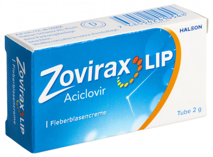 Zovirax Lip Crème contre les boutons de fièvre contient comme principe actif l'aciclovir.